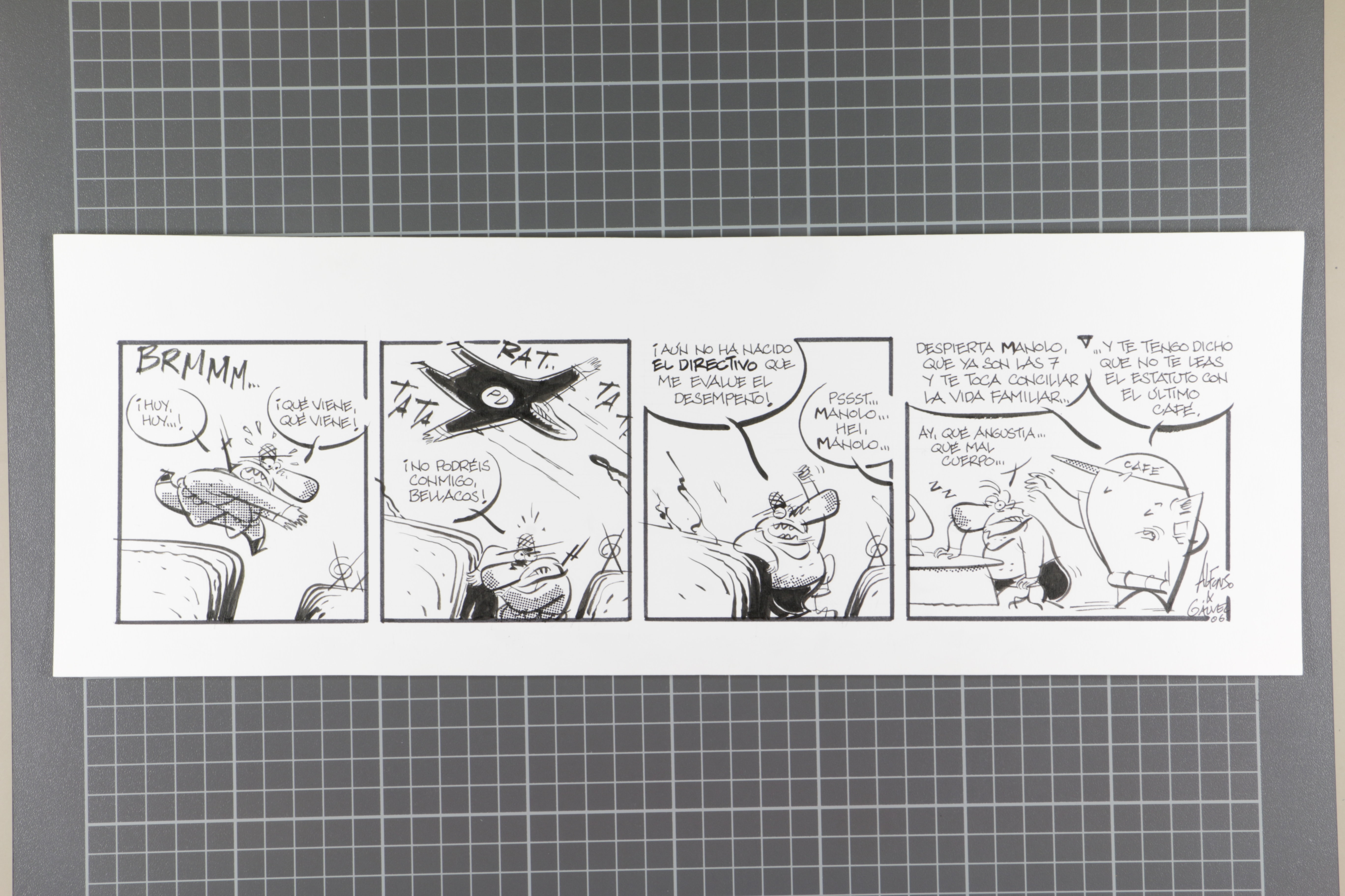 Tira còmica sense títol. Expediente exprés 3639 | López Tufet, Alfons | 2006 Tipus d'obra dibuix Material i tècnica tinta xinesa, retolador i trama mecànica sobre paper Mida 15,1 x 42,4 cm L'artista (1) López Tufet, Alfons 1950 - Saber més de l'artista
