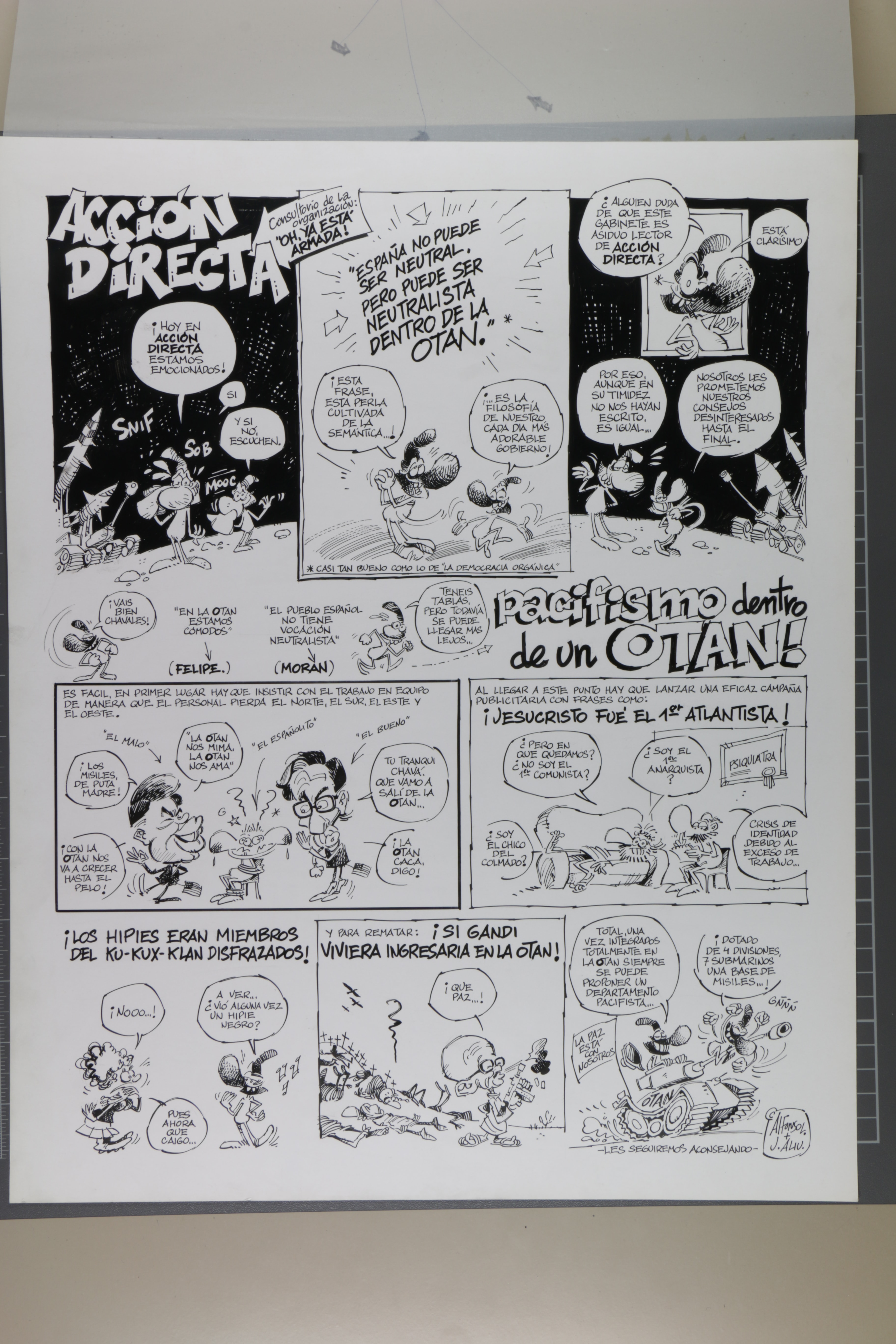 Pacifismo dentro de un OTAN! Acción directa 3955 | López Tufet, Alfons | c. 1984 Tipus d'obra dibuix Material i tècnica tinta xinesa sobre paper Mida 43,7 x 35 cm L'artista (1) López Tufet, Alfons 1950 - Saber més de l'artista