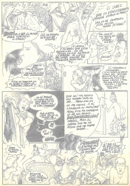 Mario Gamma El Griego: Prólogo 2 4554 | Boldú Salvador, Ramon | 1989 - 1991 Tipus d'obra dibuix (obra visual) Material i tècnica grafit sobre paper Mida 29,6 x 20,9 cm Forma d'ingrés Donació Ramon Boldú, 2020 Descripció Segona pàgina del pròleg de la publicació editada per Ediciones La Cúpula (1991) a la col·lecció Víbora Comix, on apareix la nòvia del protagonista parant el tocadiscos i discutint amb Mario perquè ella treballa i té mal de cap i ell no. Llegir més L'artista (1) Boldú Salvador, Ramon 1951 - Saber més de l'artista