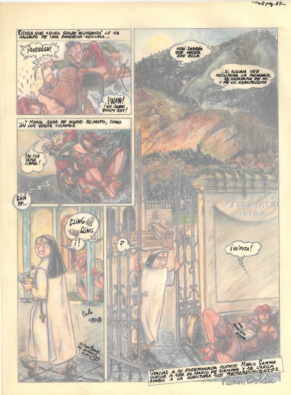 Mario Gamma El Griego: Pàgina 37 4594 | Boldú Salvador, Ramon | 1989 - 1991 Tipus d'obra dibuix (obra visual) Material i tècnica aquarel.la (T. Dib.) sobre paper Mida 34,9 x 26 cm Forma d'ingrés Donació Ramon Boldú, 2020 L'artista (1) Boldú Salvador, Ramon 1951 - Saber més de l'artista