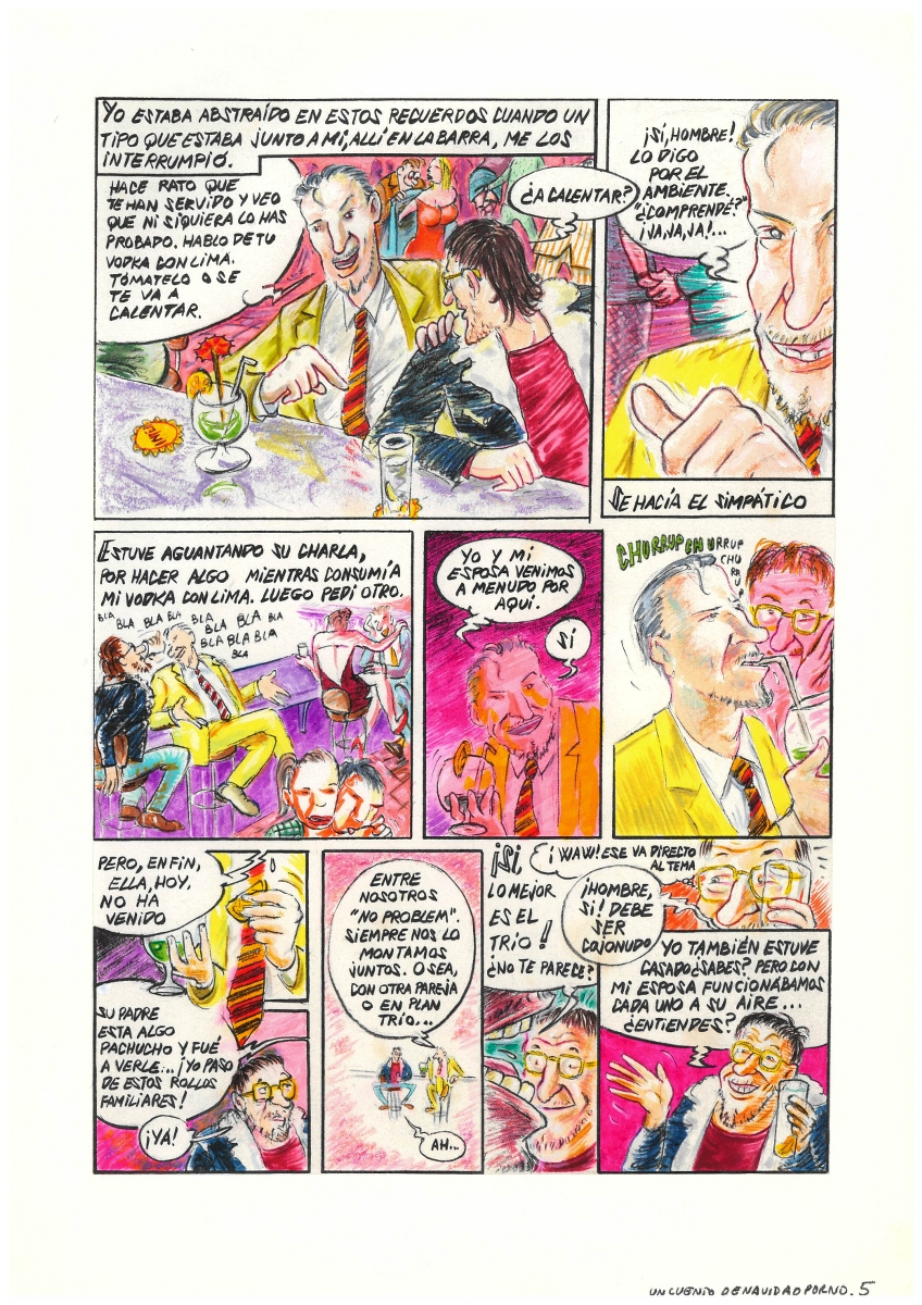 Bohemio pero abstemio. Memorias de un hombre de segunda mano: Un cuento de Navidad porno-Pàgina 5 4620 | Boldú Salvador, Ramon | 1991 - 1992 Tipus d'obra dibuix (obra visual) Material i tècnica tinta xinesa sobre paper Mida 29,6 x 21 cm Forma d'ingrés Donació Ramon Boldú, 2020 L'artista (1) Boldú Salvador, Ramon 1951 - Saber més de l'artista