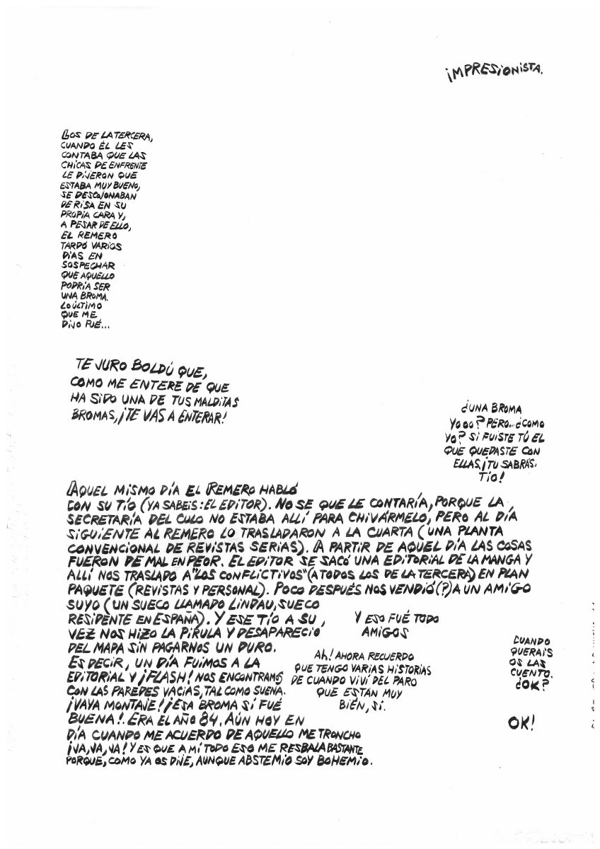 Bohemio pero abstemio. Memorias de un hombre de segunda mano: El remero de Huesca-Epílogo 4646 | Boldú Salvador, Ramon | 1991 - 1992 Tipus d'obra dibuix (obra visual) Material i tècnica tinta xinesa sobre paper Mida 29,7 x 21 cm Forma d'ingrés Donació Ramon Boldú, 2020 L'artista (1) Boldú Salvador, Ramon 1951 - Saber més de l'artista