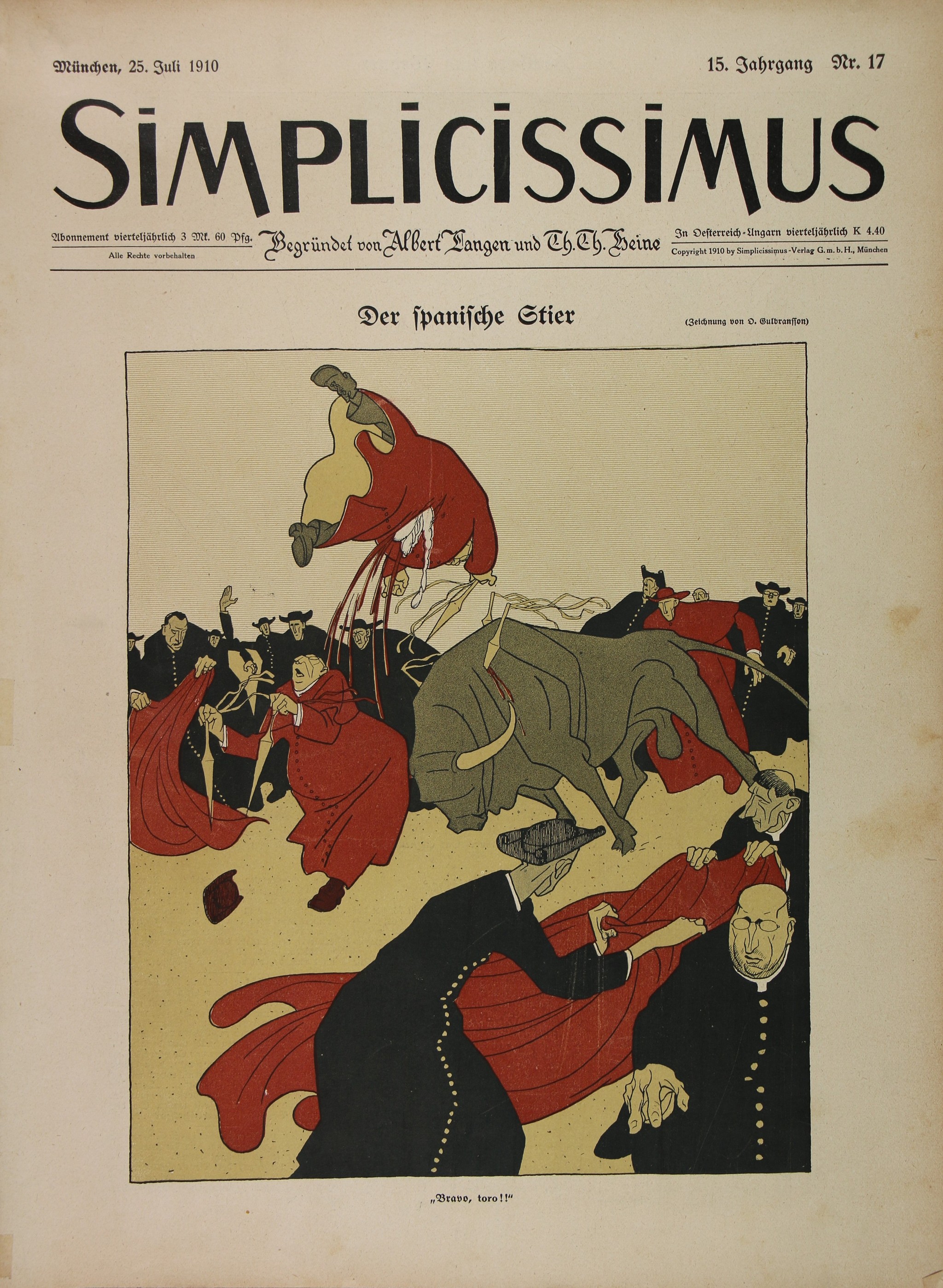 Simplicissimus 5540 | Gosé Rovira, Xavier | 1909-1912 Tipus d'obra revista Material i tècnica impressió sobre paper Mida 37,7 x 28 cm Forma d'ingrés Donació d'Alberto Velasco, 2023 Descripció Revista "Simplicissimus", Múnic. Núm. 17, 20, 29, 41, 44, 49. Il·lustracions interiors de Xavier Gosé Llegir més L'artista (1) Gosé Rovira, Xavier 1876 - 1915 Saber més de l'artista