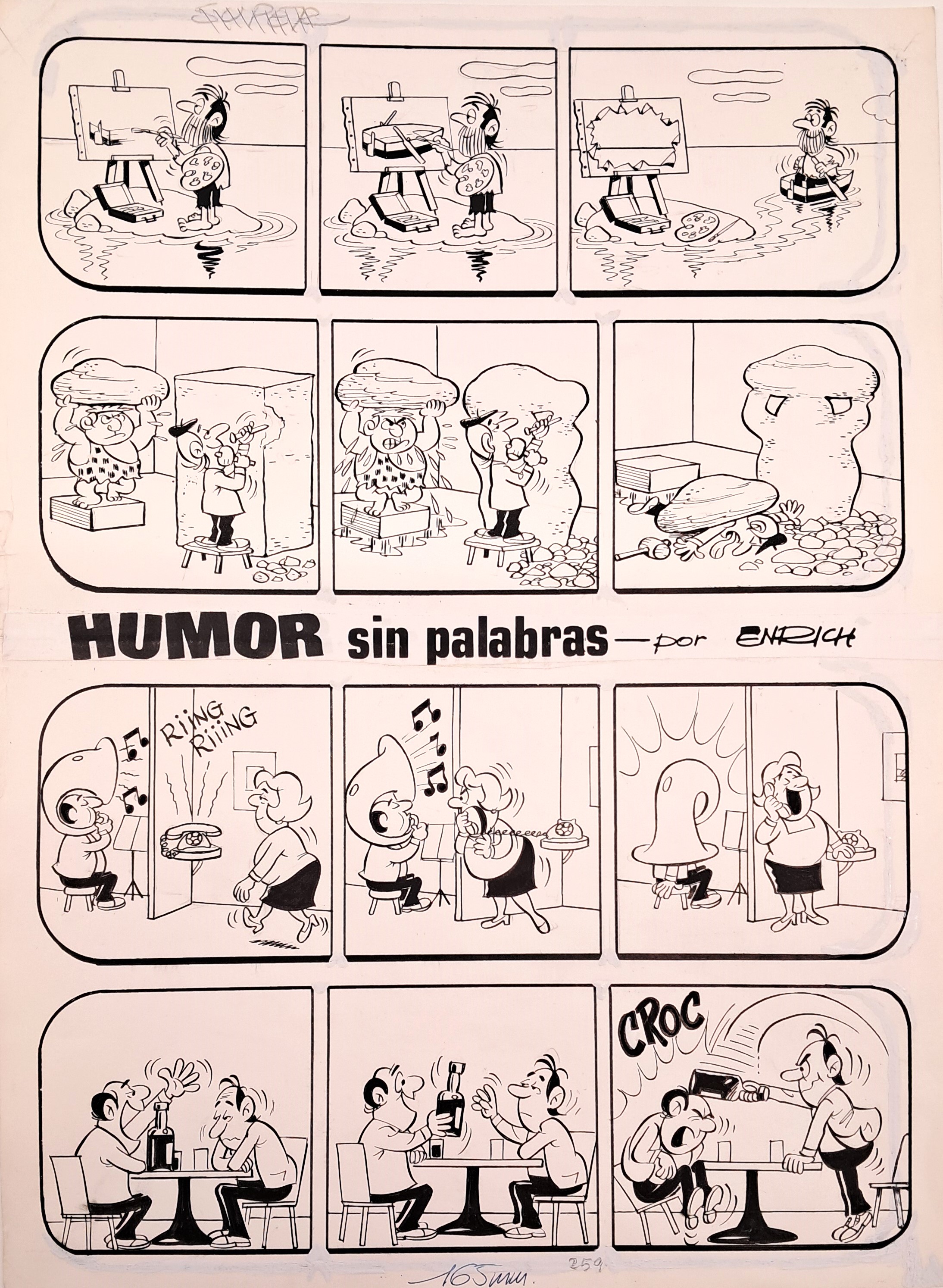 Humor sin palabras 5638 | De Manuel González, Enric | 1974 Tipus d'obra Dibuix (obra visual) Material i tècnica tinta xinesa Mida 42 x 32 cm Forma d'ingrés Dipòsit de la Generalitat de Catalunya. Col·lecció Nacional del Còmic i la Il·lustració, 2024 L'artista (1) De Manuel González, Enric 1930 - 2023 Saber més de l'artista