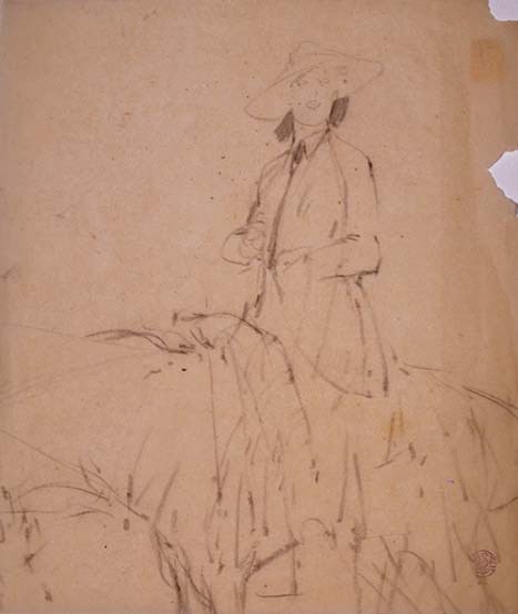 Dona a cavall 761 | Gosé Rovira, Xavier | primer quart segle XX Tipus d'obra dibuix sobre paper Material i tècnica conté damunt paper Mida 32,3 x 28,1 cm L'artista (1) Gosé Rovira, Xavier 1876 - 1915 Saber més de l'artista
