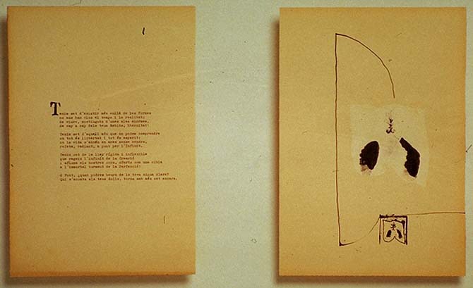 Dibuix i poema 969 | Jové Jové, Àngel | 1964 Tipus d'obra dibuix sobre paper Material i tècnica tinta sobre paper Mida 32,4 x 22,1 cm poema L'artista (1) Jové Jové, Àngel 1940 - 2023 Saber més de l'artista
